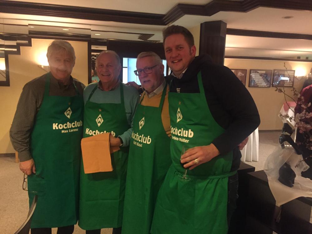 Am 08. März 2017 traf sich der Werder-Kochclub um Jürgen L. Born und Max Lorenz im Berufsbildungswerk Bremen (BBW). Geschäftsführer Dr. Torben Möller begrüßte die Köche. Dann ging es auch gleich in die Küche des Ausbildungsrestaurant Mondial, wo mit viel Leidenschaft und guten Gesprächen an der Vor- und Zubereitung eines Drei-Gang-Menüs gearbeitet wurde. Dr. Möller freute sich besonders über das Lob der Köche, die ihn nun in ihren Kreis aufgenommen haben und zukünftig ihre Kochevents zum Heimspiel im Ausbildungsrestaurant Mondial machen wollen.