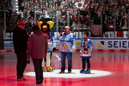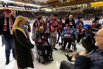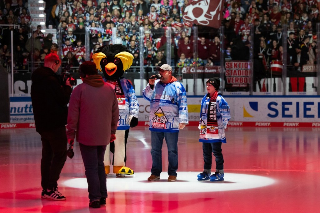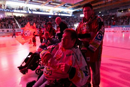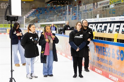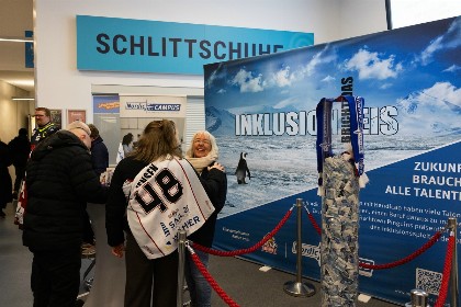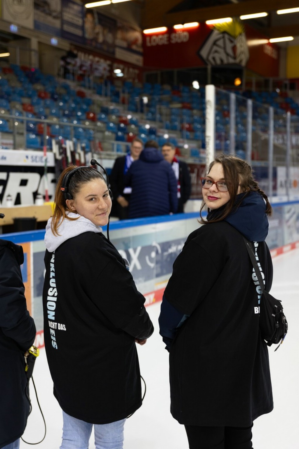 Auch Franziska Römer ist wieder dabei. Mit sichtlicher Freude unterstützt sie den Stadionsprecher, begleitet ihn aufs Eis und erlebt das Spiel aus der ersten Reihe. Ihre Begeisterung ist ansteckend – und zeigt, was möglich wird, wenn Menschen Vertrauen und Chancen erhalten.