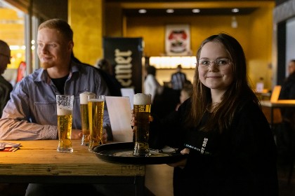 Als sich um 17.45 Uhr die Türen der Eisarena öffnen, beginnt der Spieltag richtig. Am VIP-Einlass begrüßen Faye und Bryan Phillip die Gäste. Sie haben sichtlich Spaß an der Aufgabe, lächeln, akkreditieren und sind mittendrin statt nur dabei. In der Pistenbar sorgen Jasmin und Kathryn für einen reibungslosen Service. Das Lob der Gäste lässt nicht lange auf sich warten – und auch die Kolleginnen und Kollegen sind dankbar für die Unterstützung. Im Fanshop verkauft Joy Scarlett Fanartikel an begeisterte Pinguins-Fans. Eine neue Aufgabe, die sie mit großer Freude übernimmt.
